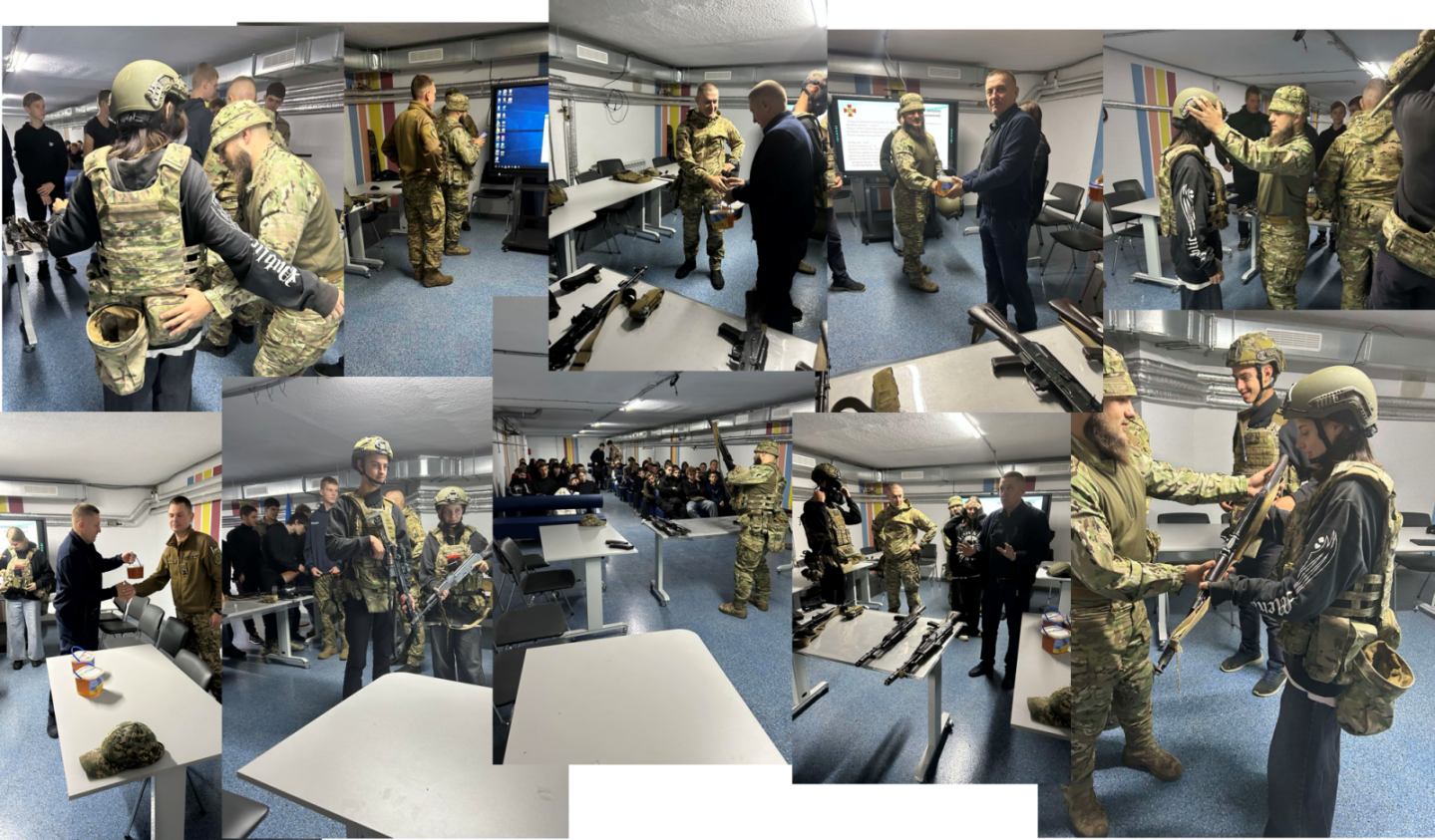 До Дня захисників і захисниць України в Закладі професійної (професійно-технічної) освіти "Бориспільський професійний коледж" здобувачі освіти, учасники клубу "Боривітер", провели вишкіл для першокурсників під гаслом "Вчимося, вміємо, знаємо, готові" та зустрілися з бійцями Національної Гвардії, вручивши їм солодкий подарунок. |